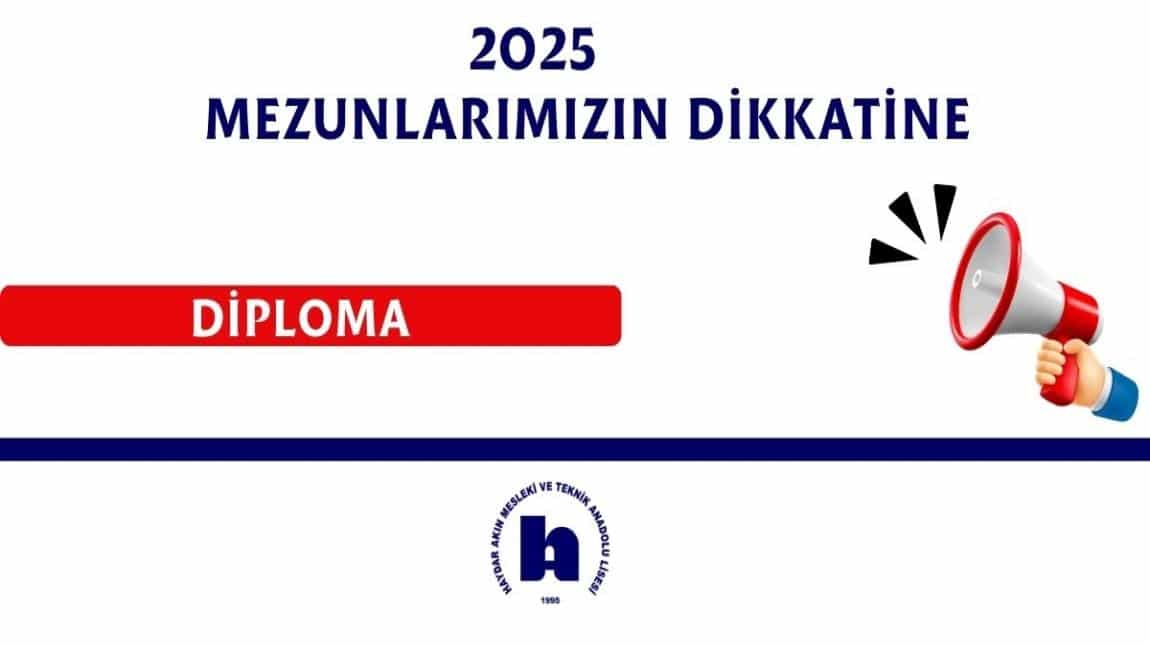 ÖNEMLİ NOT: Diplomalar sadece öğrencinin kendisine veya VELİSİNE (anne-baba) verilecektir.