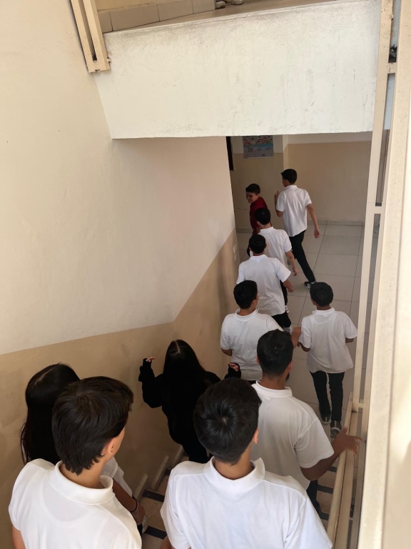Afet Farkındalık Eğitimi verilen öğrencilerimiz deprem tahliye planı çerçevesinde olası bir depremde uygulayacakları “Çök-Kapan-Tutun” tekniğini ve tahliye aşamalarını uygulamalı olarak gördüler.