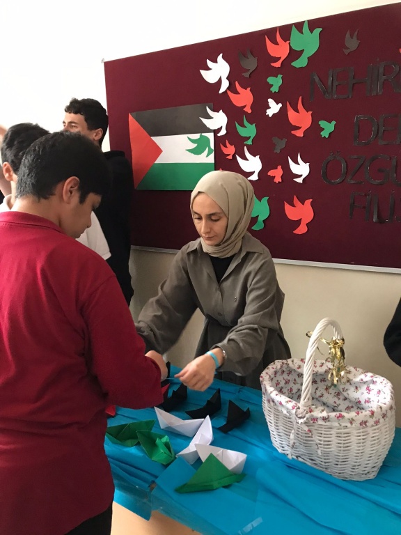 7 Ekim 2023’te başlayan ve hâlen devam eden Filistin zulmüne dikkat çekmek, mazlum halkın yanında olduğumuzu göstermek ve barış çağrısında bulunmak amacıyla bir farkındalık programı gerçekleştirdik.